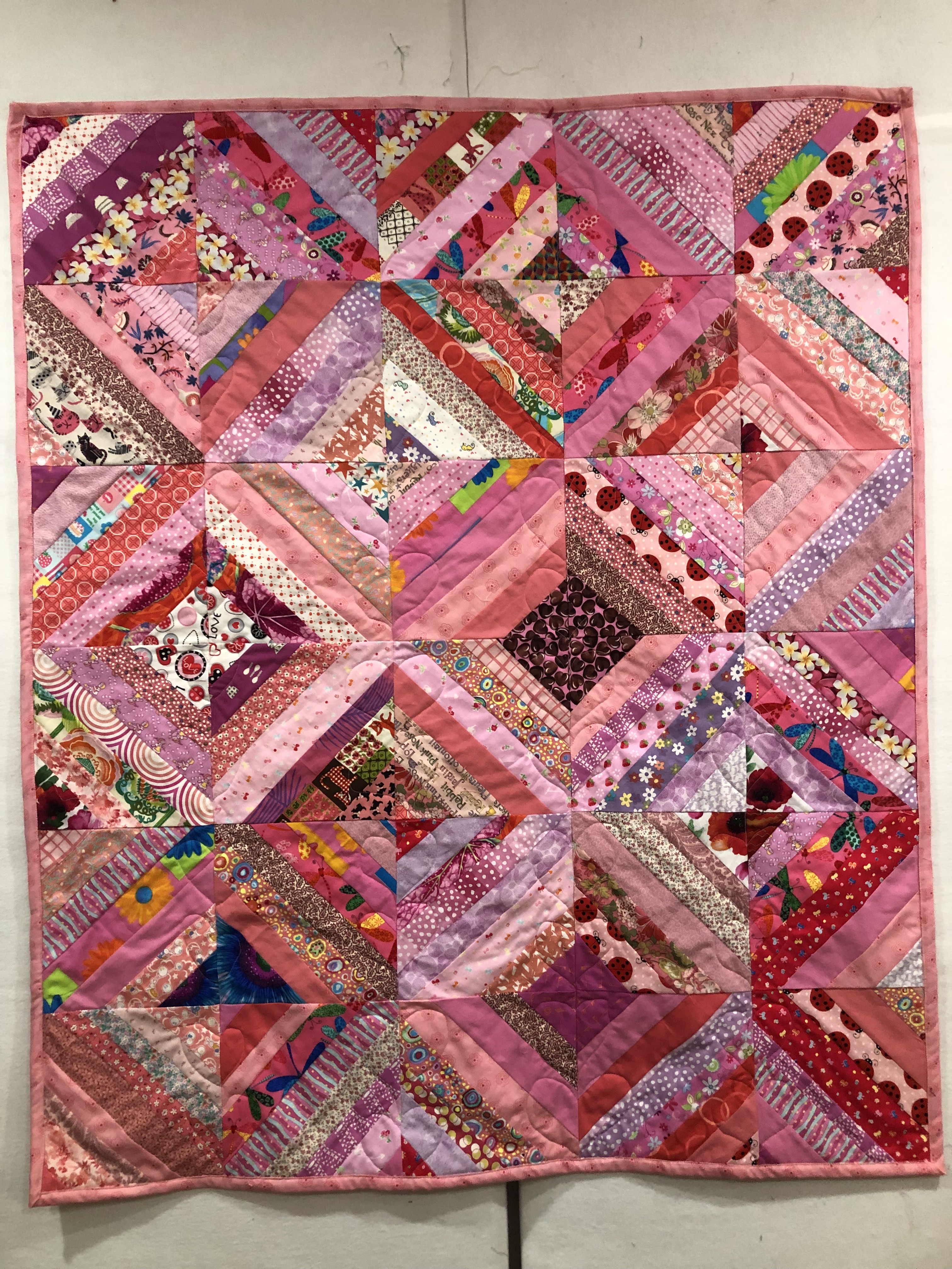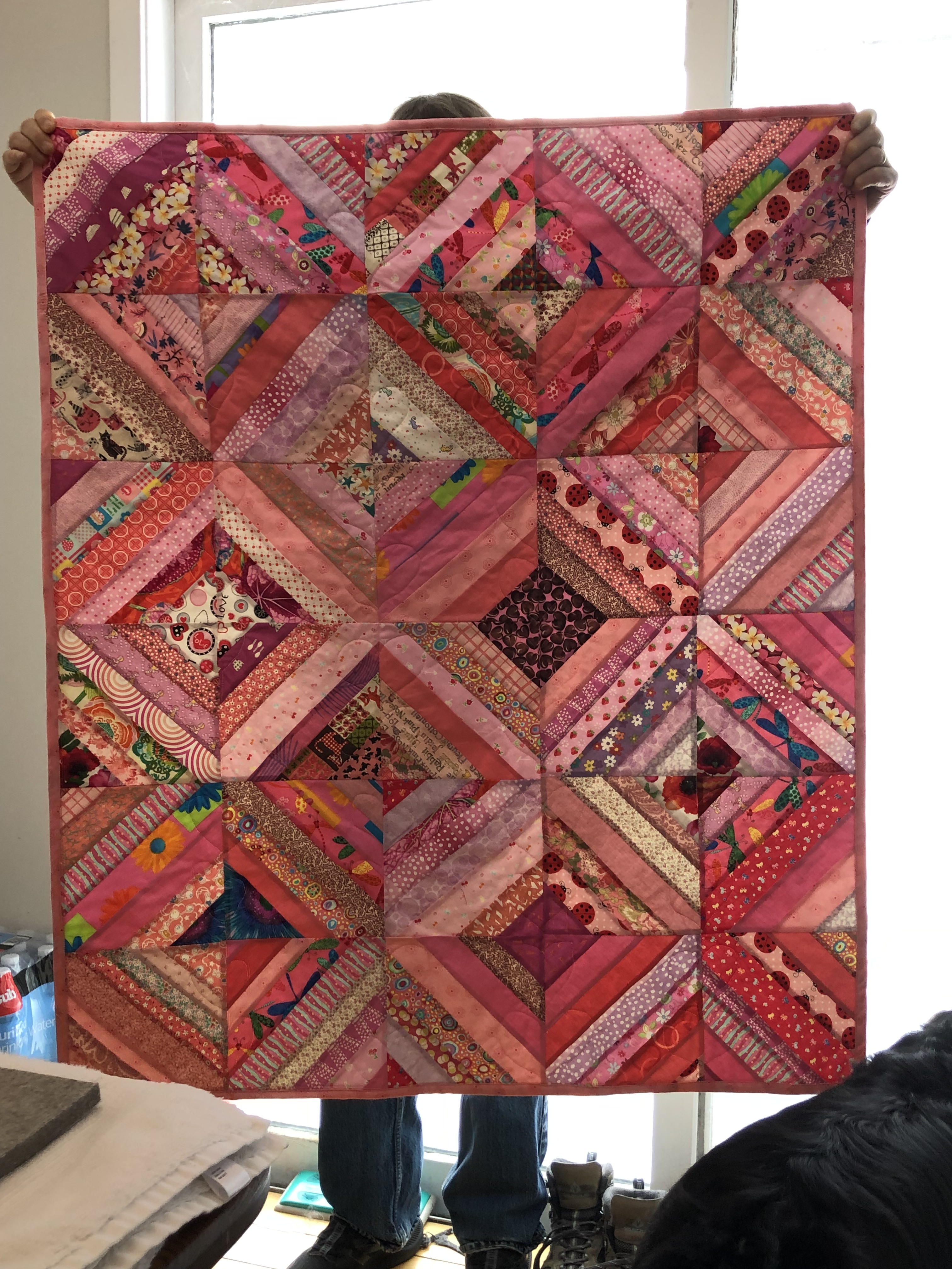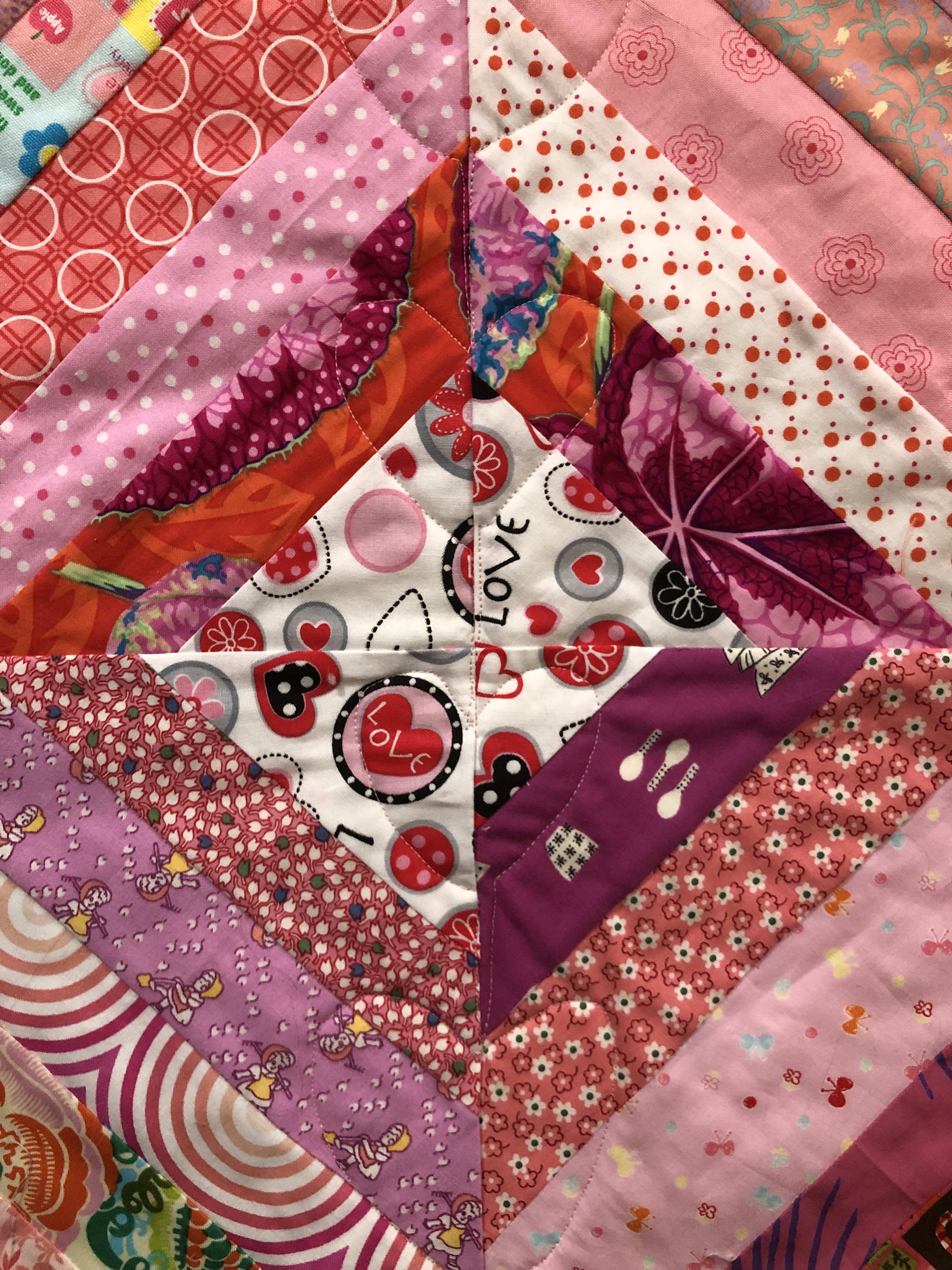 The prompt for this week’s challenge is One. I thought of One Block Wonders, a way of making spinning hexagons. I have enjoyed looking at these quilts, but honestly didn’t understand how to make one. This fit my criteria! I did a little searching on the internet and learned about how to use 6 fabric panels to make the 60 degree triangles needed.