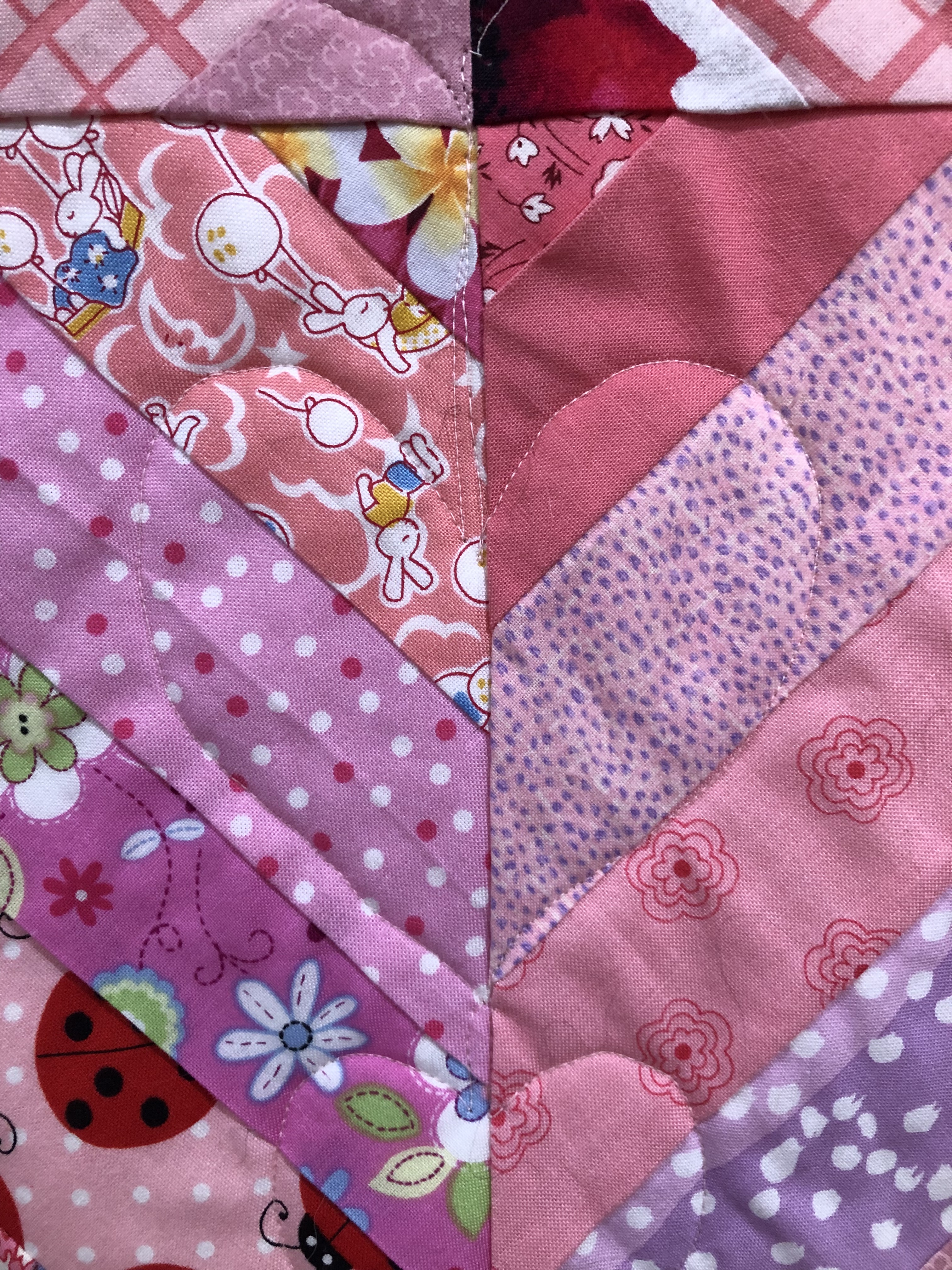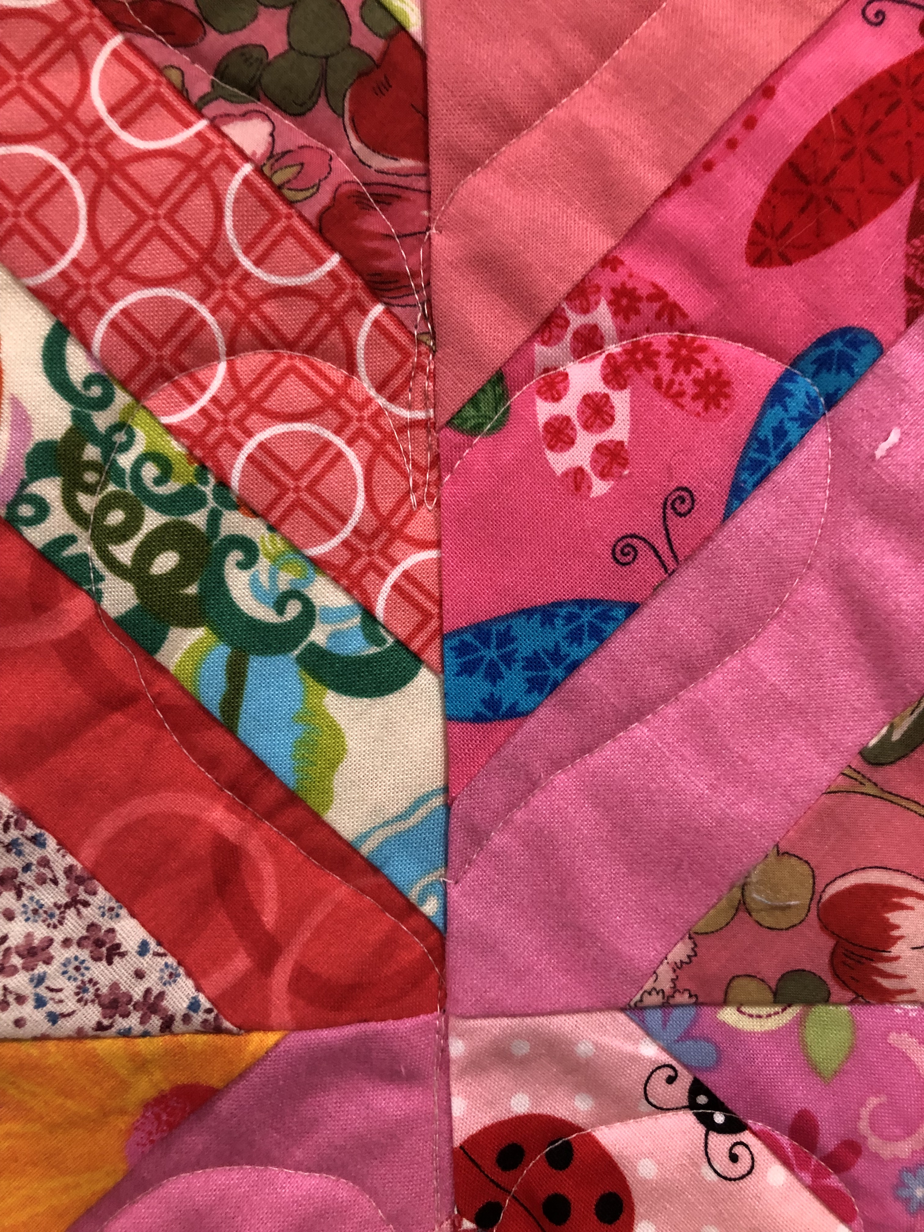 I love the Project Quilting flexibility though. I decided to pick out one block and play with adding some additional triangles and diamonds with scraps from the same balloon fabric line. In the end, I made a 17″ complex hexagon quilted piece with one of the One block Wonders in the center. I made use of the Y-seam method I learned in a Minnesota Quilters online retreat in 2021.