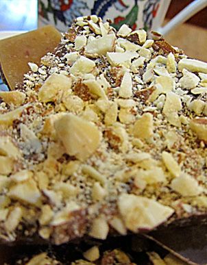 Then, cover the melted chocolate with chopped almonds. I like a lot of nuts.