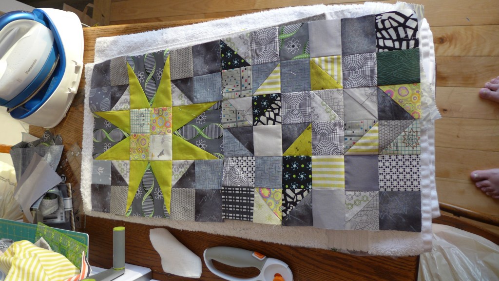 The prompt for this week’s challenge is One. I thought of One Block Wonders, a way of making spinning hexagons. I have enjoyed looking at these quilts, but honestly didn’t understand how to make one. This fit my criteria! I did a little searching on the internet and learned about how to use 6 fabric panels to make the 60 degree triangles needed.